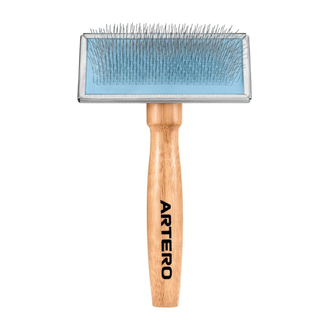 Classic Slicker for dogs and cats is a crucial tool for the dog grooming professional. Remove hair knots and comb the coat.